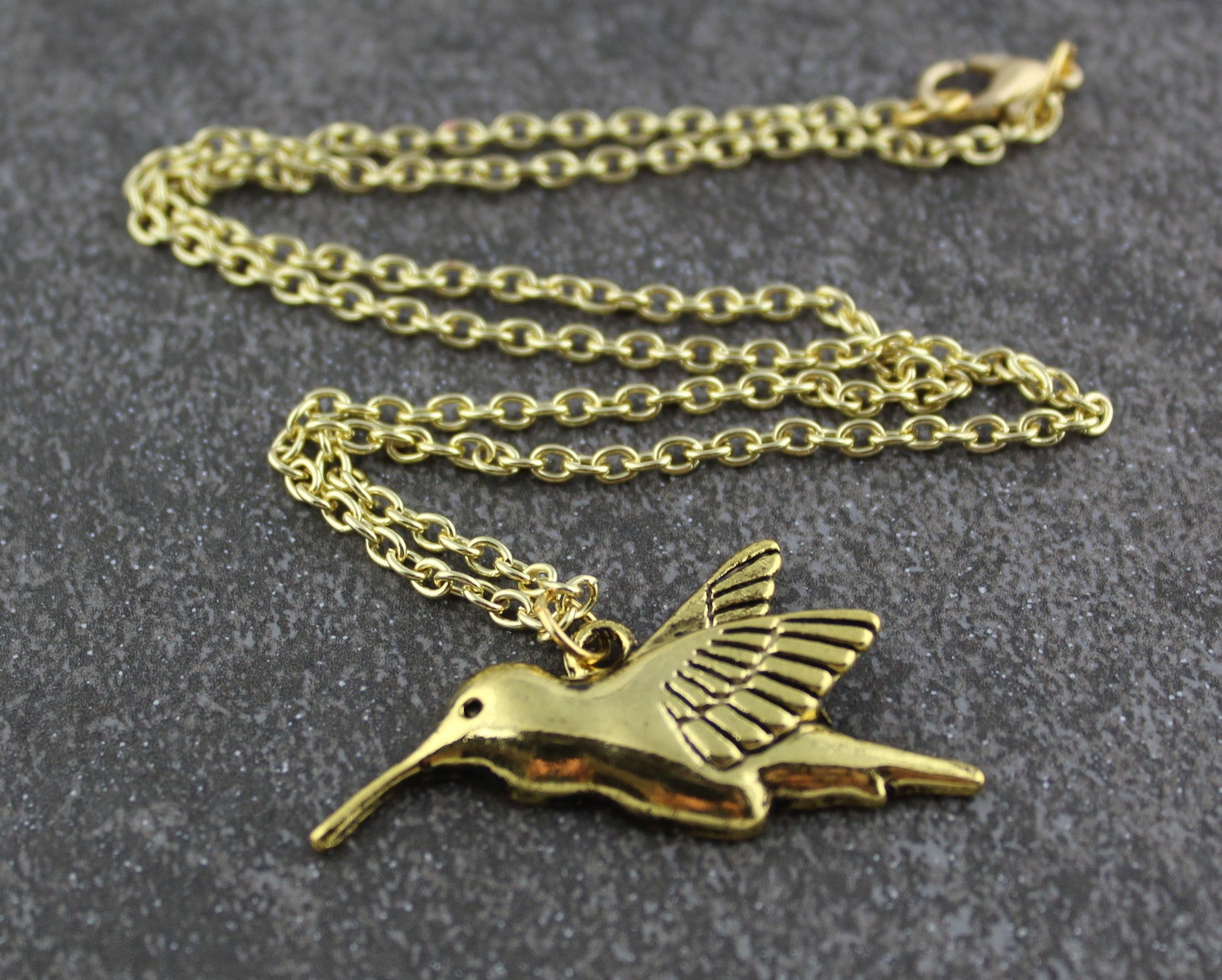 These necklaces are made with a either gold or silver hummingbird charm with 18" gold or silver chain.